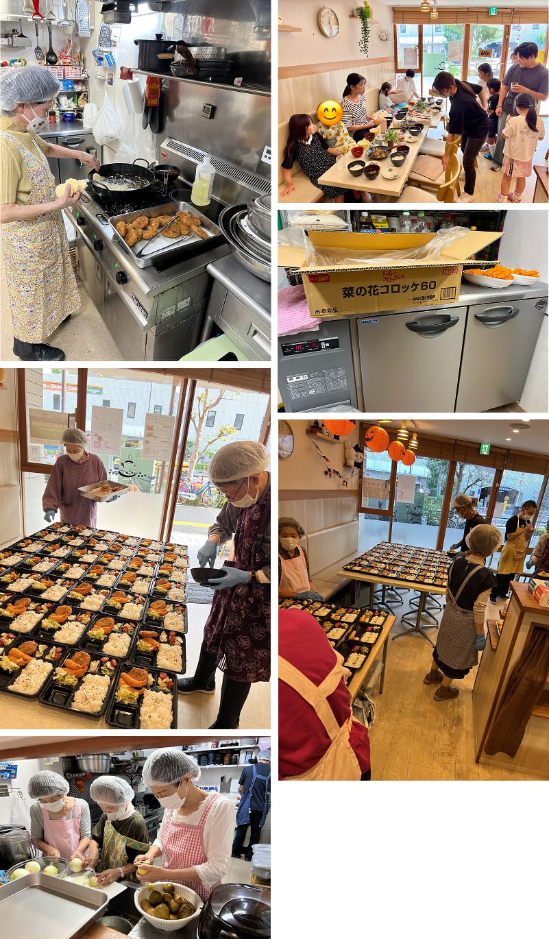 こども・多世代食堂は、毎月3回の開催となりますが、毎回、80食から100食のお弁当の配布と15名ほどの親子での会食の対応もできるようになり、地域の親子や高齢者の方々から感謝のお言葉を頂いております。あたらしくもい仕込みされる方も増え、今では地域の居場所となっているといっても過言ではありません。
