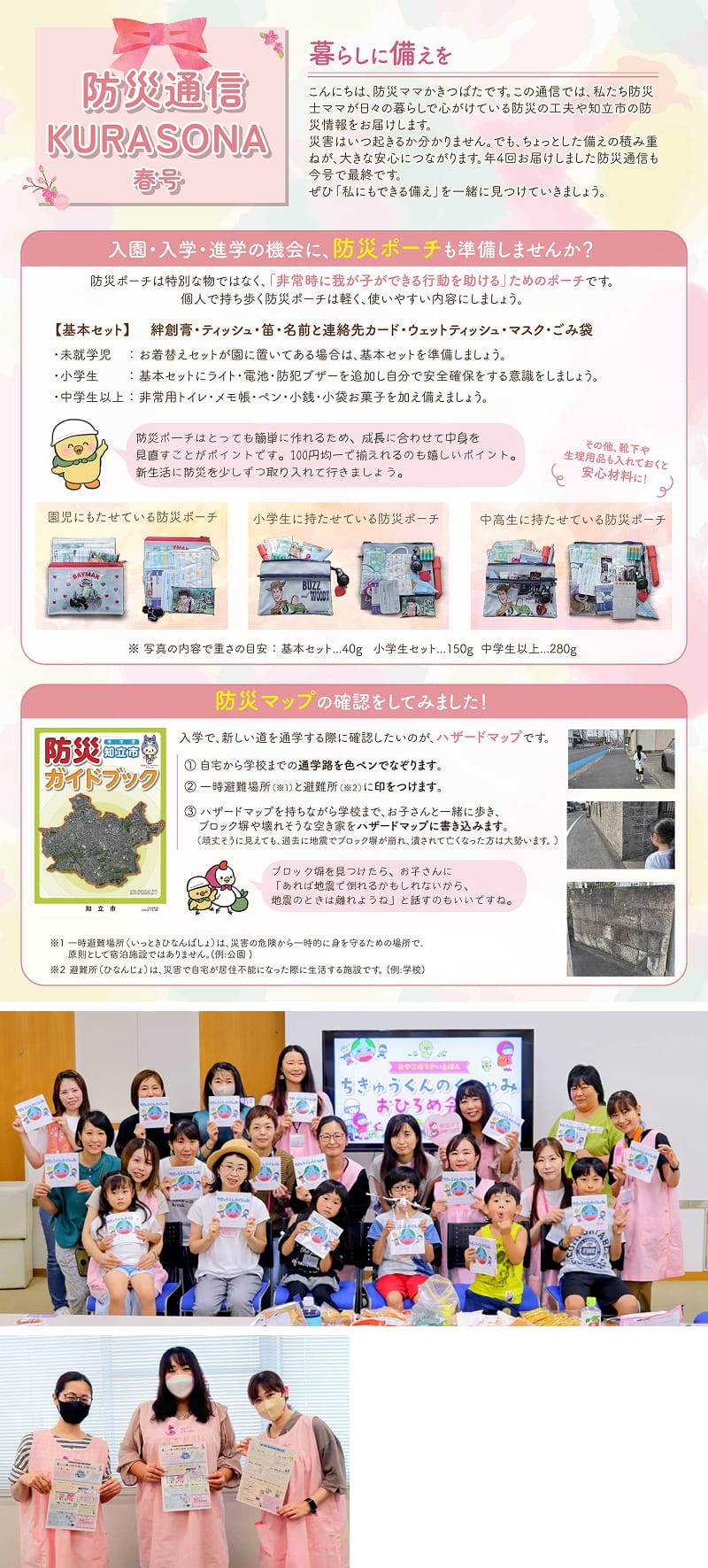 年に1回でも講座をすることにも、備えた、という声もいただきますので、開催の意義がありますが、もっと日常から防災啓発をしていきたい、していく必要があると思っています。年に4回町内会の回覧板とWEBで防災の瓦版を発行することで、みんなが目を通す回覧板で防災意識と知識を高める人を一人でも多く増やしていきたいと思っています。