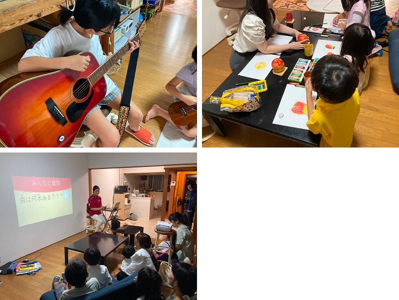 実際に実施したイベントは子どもたち向けには「リトミック教室」「演劇教室」「絵画教室」です。親子向けとして、「歯磨き講習会」も行いました。