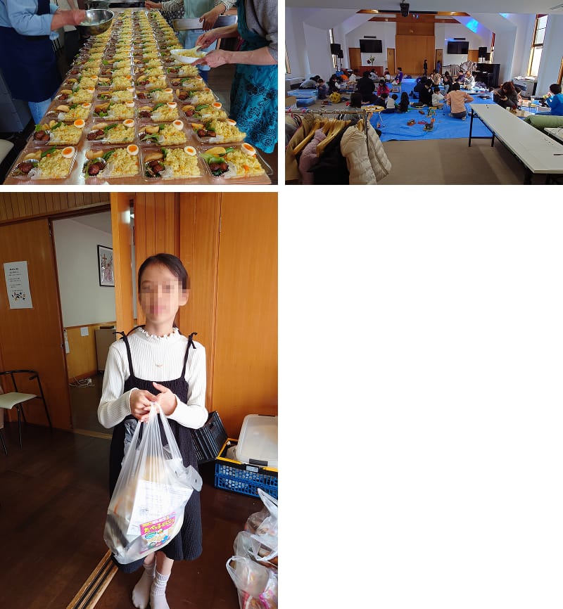私たちの活動の中にフードパントリーがあります。毎月、50世帯の方々に食料品を提供しています。昨今の物価高騰により、食料品の提供にどうしてもばらつきが生まれてしまいます。そのばらつきを抑え、毎月同じ量の食料品を提供できないかと考えています。困窮家庭への食料品の提供はいつも大変喜ばれています。アウトリーチでも食料品を配達していますが、会話のきっかけ、助けの必要な事柄も知ることができ、そのような繋がりを形成する良き手段ともなっています。特にアウトリーチでは地域の学校のスクールソーシャルワーカー、地域の民生委員・児童委員の方々が活躍してくださっています。