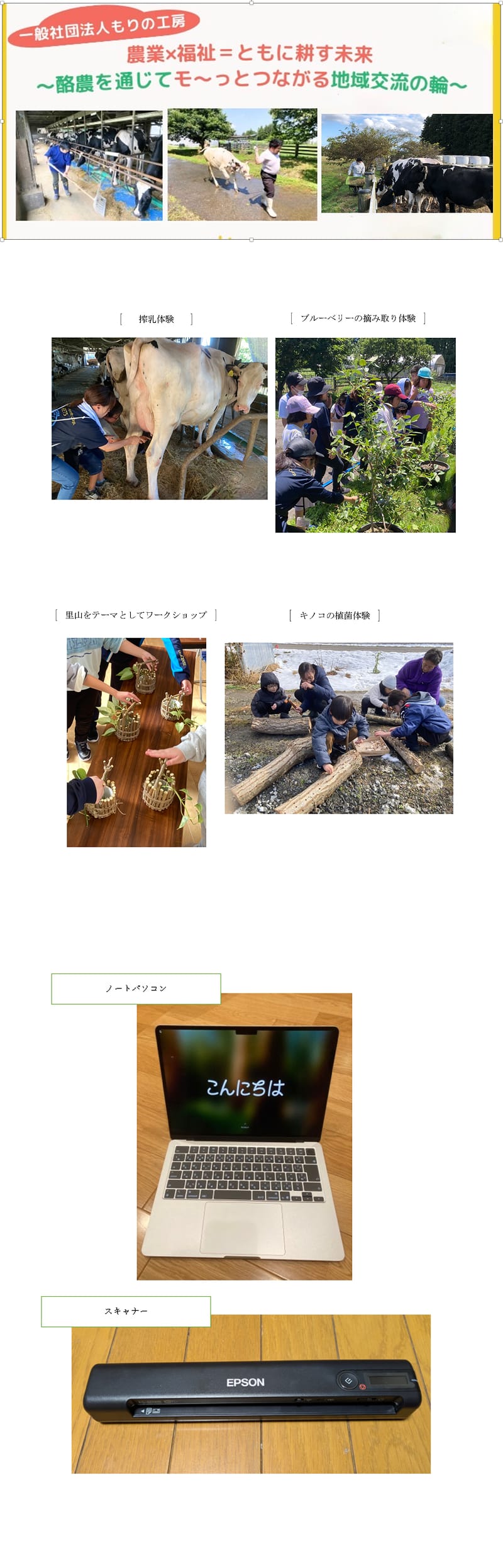 現在社会において、障害者の就労・生活支援は行政の政策のみでは限界があり、地域社会全体で支え合う「共生・協働」の土壌づくりが急務となっています。本事業では、助成により導入したPCを活用してホームページを作成しました。農福連携の現場で障害者が生き生きと活躍する事例を発信することで、地域住民や関係者の意識変容を促し、持続可能な地域づくりに寄与することを目的としました。